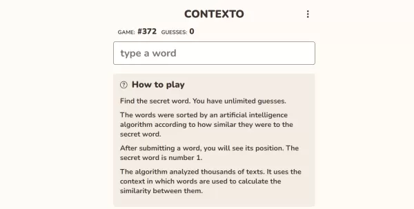 Contexto为每日文字游戏带来了全新体验。与Wordle不同,它会提供上下文线索,告诉你当前猜测与目标词的接近程度,按相关性排序为第1位。拥有无限猜测机会,你可以判断自己是越来越接近还是越来越遥远。考验你的耐心,享受这场挑战!